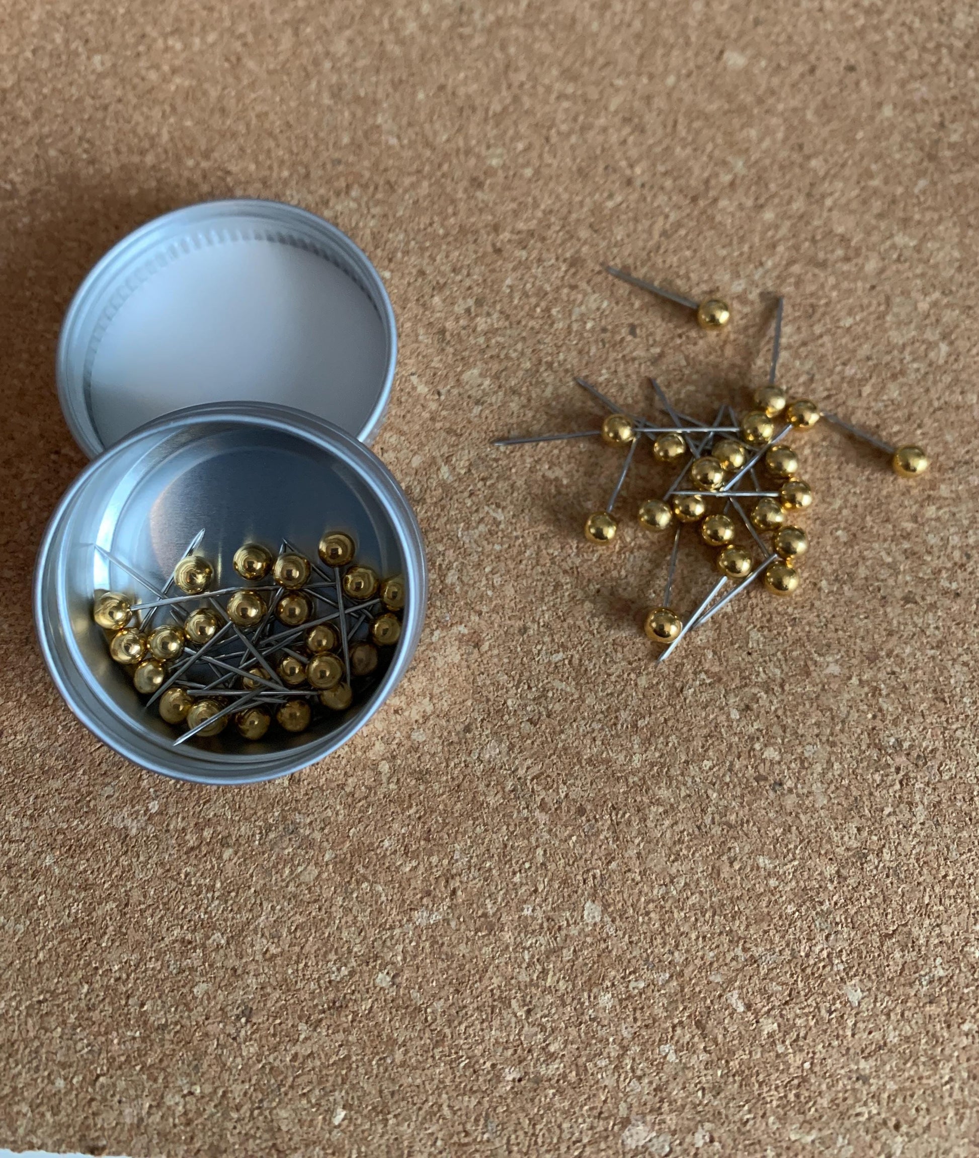 Here is my supplies listing for the Metal Gold Ball shaped corkboard push pins.