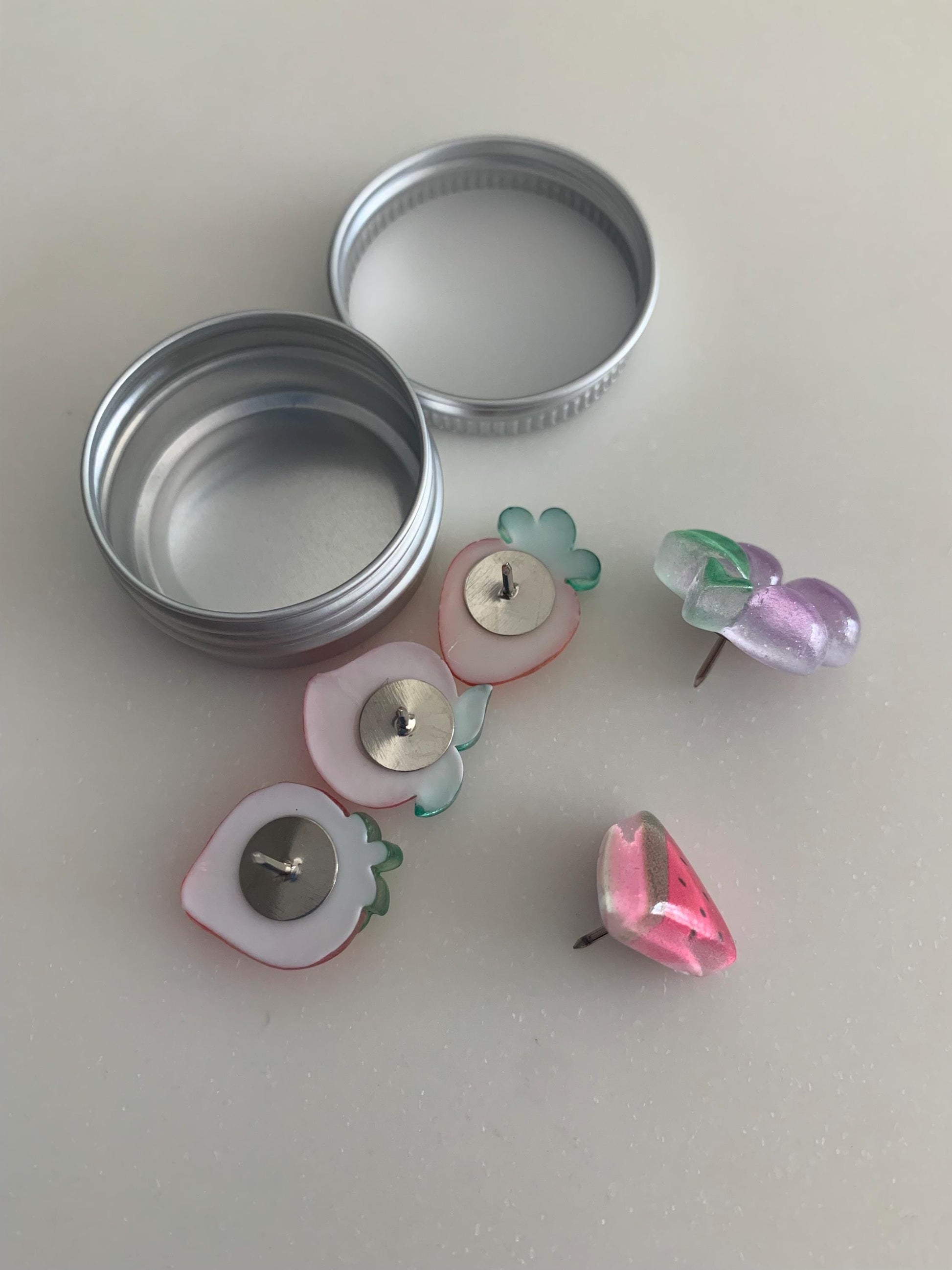 Here is my supplies listing for ‘Cute food shaped’ cabachon corkboard push pins.